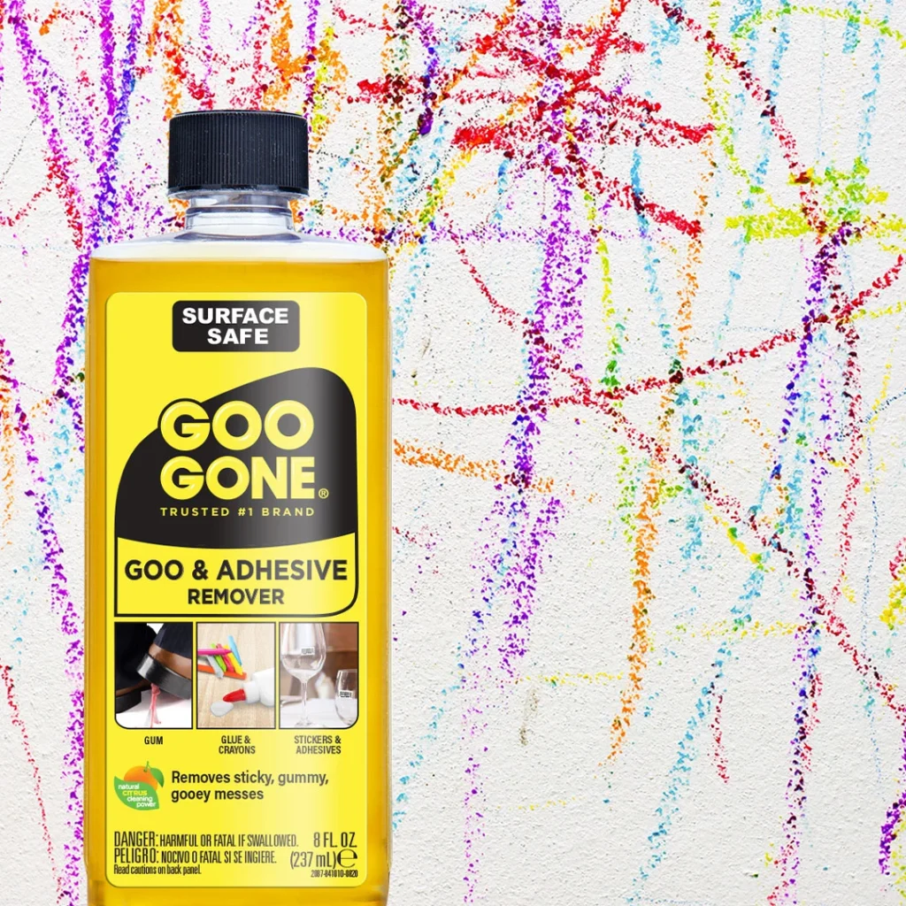 Goo Gone Original| New Window is surface safe and an amazing adhesive remover. It easily lifts tape or sticky residue, and it can even remove crayons and glue from surfaces that you want clean. It’s perfect for any sticky mess around the house.