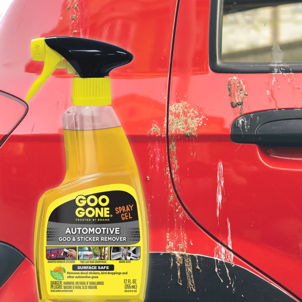 Our surface-safe, non-drip Goo Gone Automotive Spray Gel| New Window will help your car stay mint. It’s the perfect companion if you’re trying to remove bumper stickers or city stickers from the inside of your windshield. It also works great on crusty, hard-to-remove bird droppings, tree sap, brake dust, and asphalt.