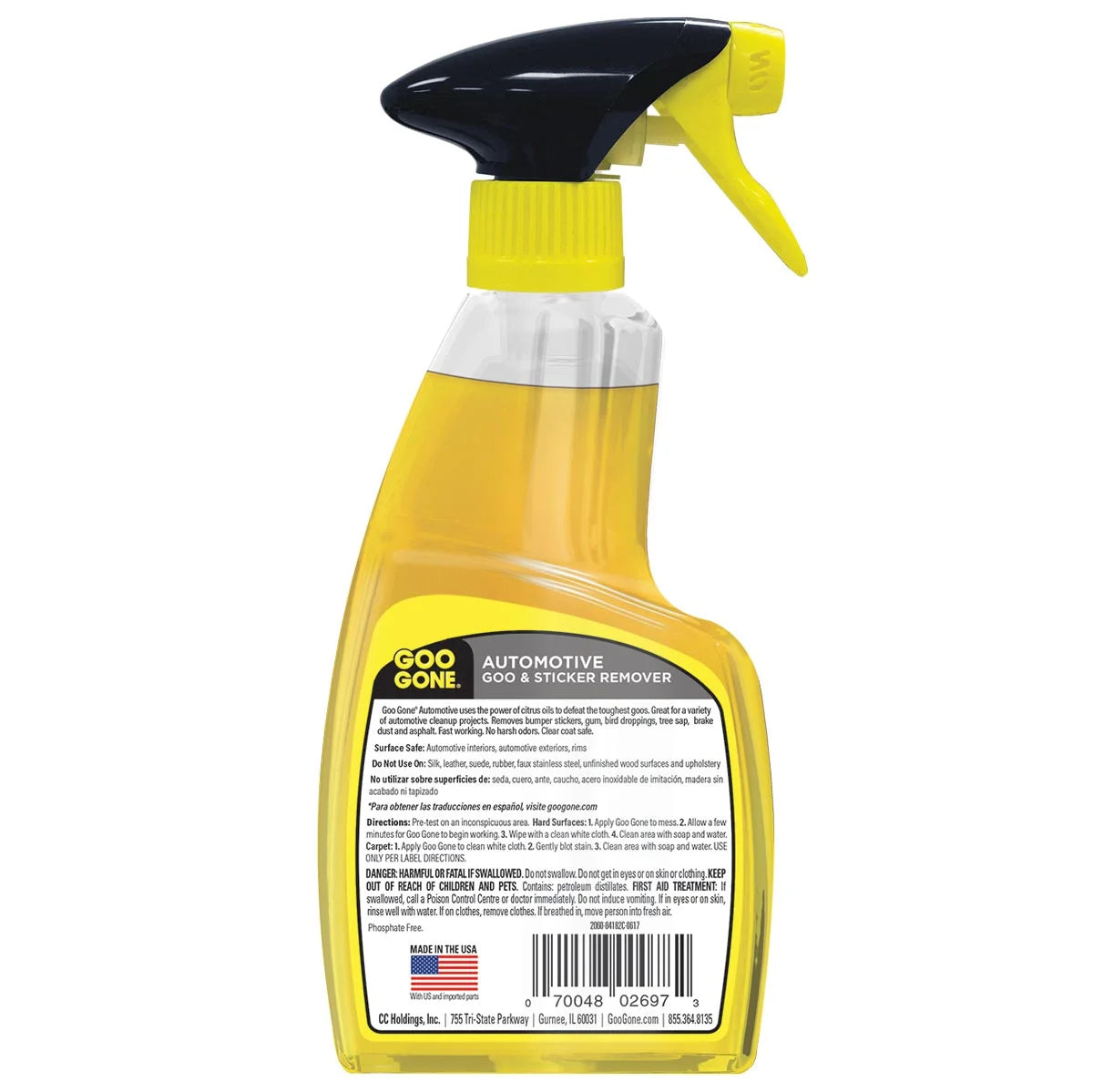 Goo Gone® Automotive aplica el poder de los aceites cítricos para combatir las manchas más persistentes. Ideal para diversas actividades de limpieza de vehículos. Elimina autoadhesivos de parachoques, chicle, excremento de pájaros, savia de árboles, pintura en aerosol, asfalto y polvo de los frenos.