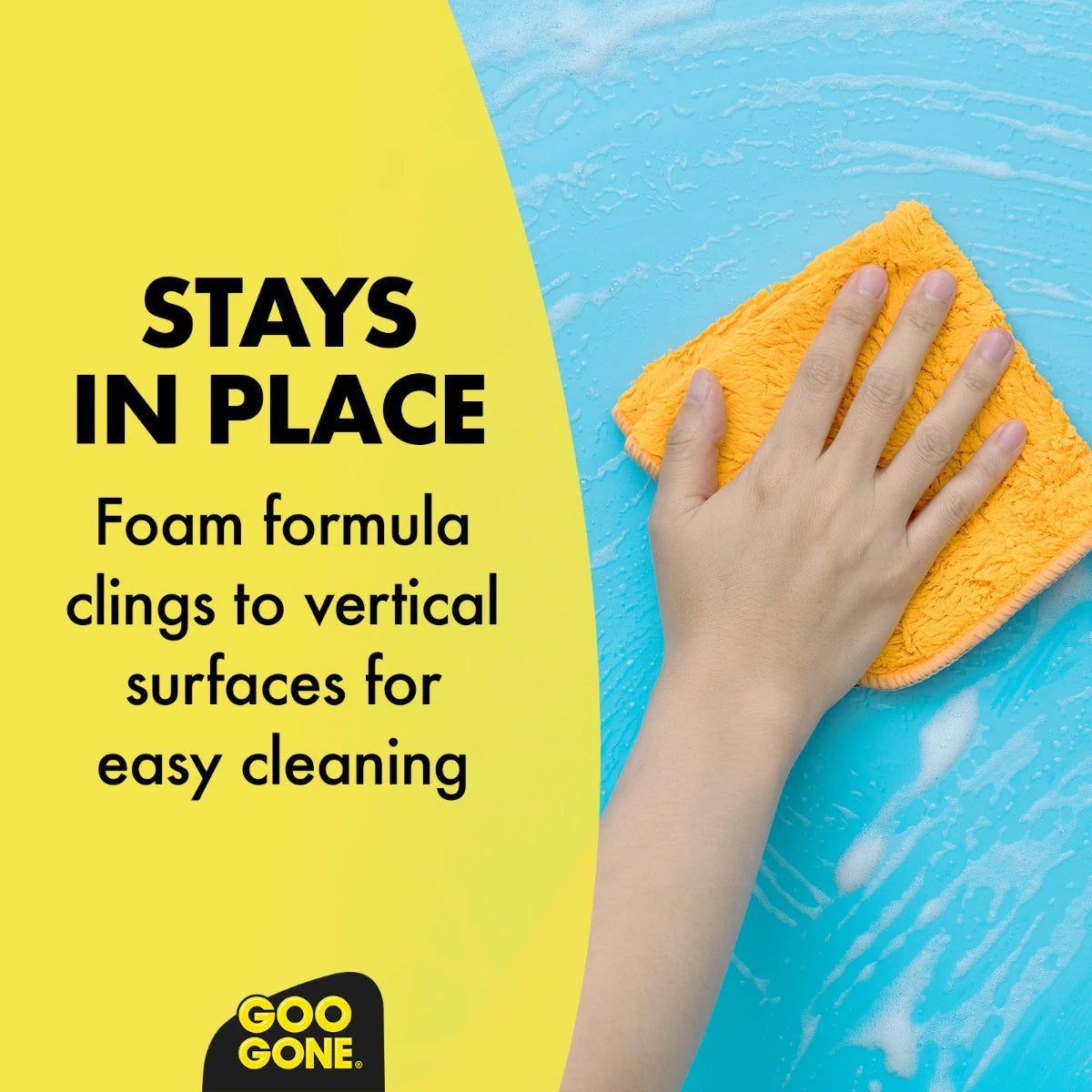 - Stay-In-Place foam clings to surfaces