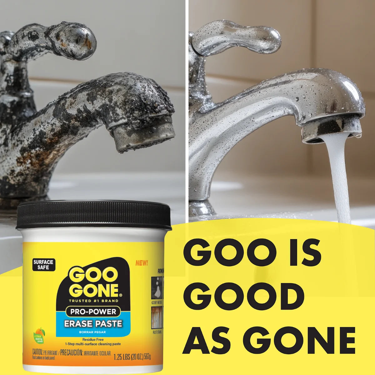 - PRO-POWER FORMULA: Goo Gone’s Pro-Power Erase Paste is designed to defeat the toughest gooey messes in the kitchen, bathroom, garage, workshop, or anywhere there’s gunk