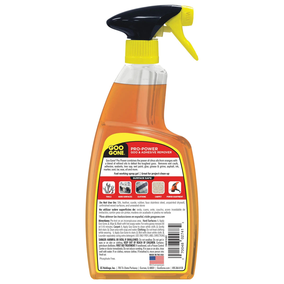 Goo Gone® Pro Power combina el poder de los aceites cítricos de las naranjas con una mezcla de aceites refinados para combatir sustancias pringosas más persistentes. Remueve masilla húmedo, adhesivos, selladores, savia de árboles, pintura fresca, pegamento, grasa y suciedad, asfalto, tinta, marcadores, hollín, alquitrán, cera, aceite y más.