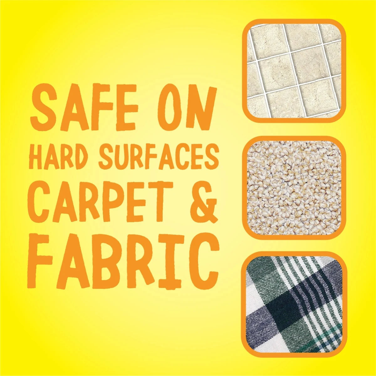 SURFACE SAFE: Safe on hard surfaces, carpets and fabrics. Works to clean goo and gunk from finished wood, painted surfaces, glass, metal, brass, chrome, fiberglass and more